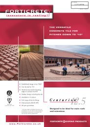 Forticrete centurion low pitch roof tile size 230 x 385mm minimum pitch 10 use with a pitch of 10º should not be attempted without prior consultation with the forticrete technical department 0800 262136 interlocking roof tile designed for low pitches.